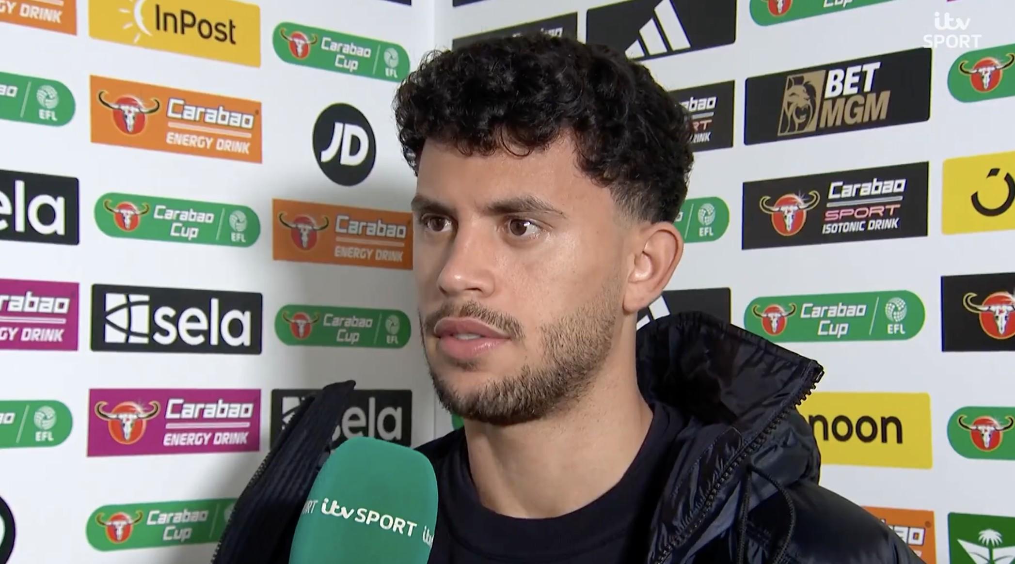 英联杯半决赛首回合,曼城将客场对阵纽卡,赛前,曼城后卫马特乌斯-努内斯接受了ITV的采访。